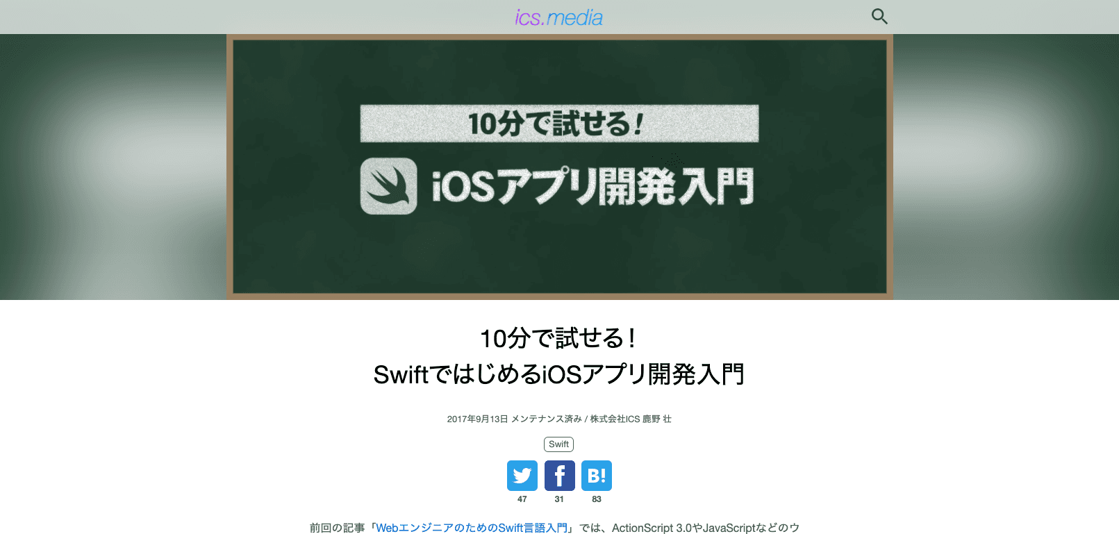 10分で試せる!iOSアプリ開発入門は、株式会社ICSが運営するオウンドメディア「ICS MEDIA」の無料コンテンツです。 環境構築から画像を交えて解説されており、短時間でサンプルアプリを作ってみたい人向けです。
