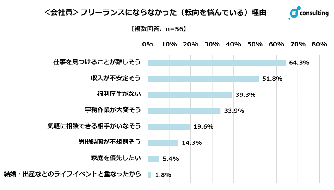Q6. あなたがフリーランスエンジニアになることを考えている(考えていた)が悩んでいる(ならなかった)理由をお答えください。(会社員、複数回答、n=56)