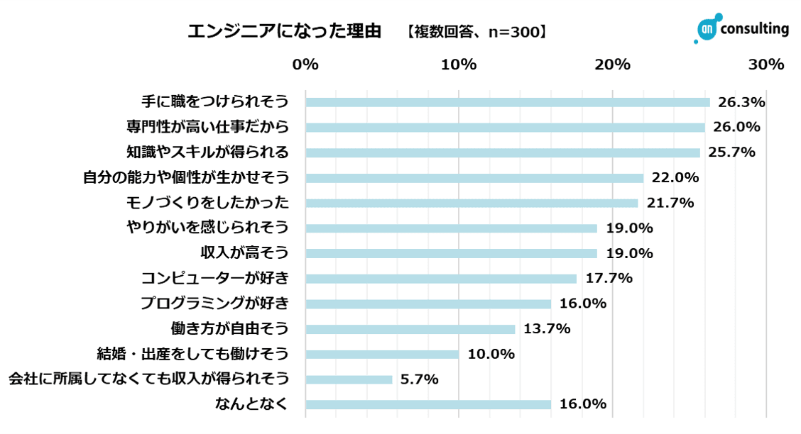 Q4. あなたがエンジニアになった理由をお答えください。(複数回答、n=300)