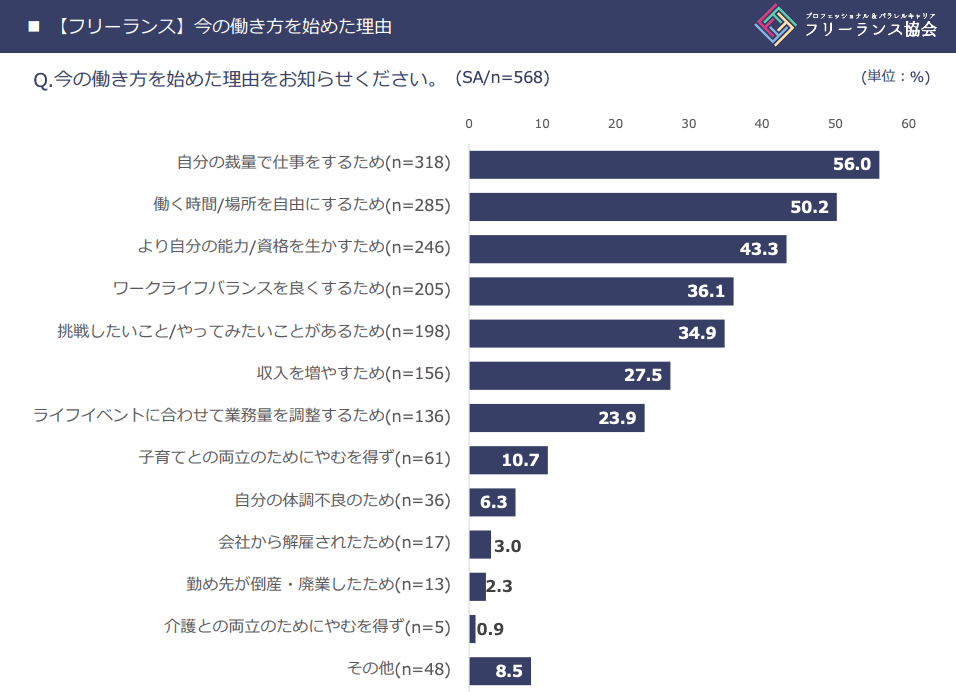フリーランス白書2020のデータでも顕著ですが、フリーランスを志す27%以上の方は「収入を増やすため」と答えています。