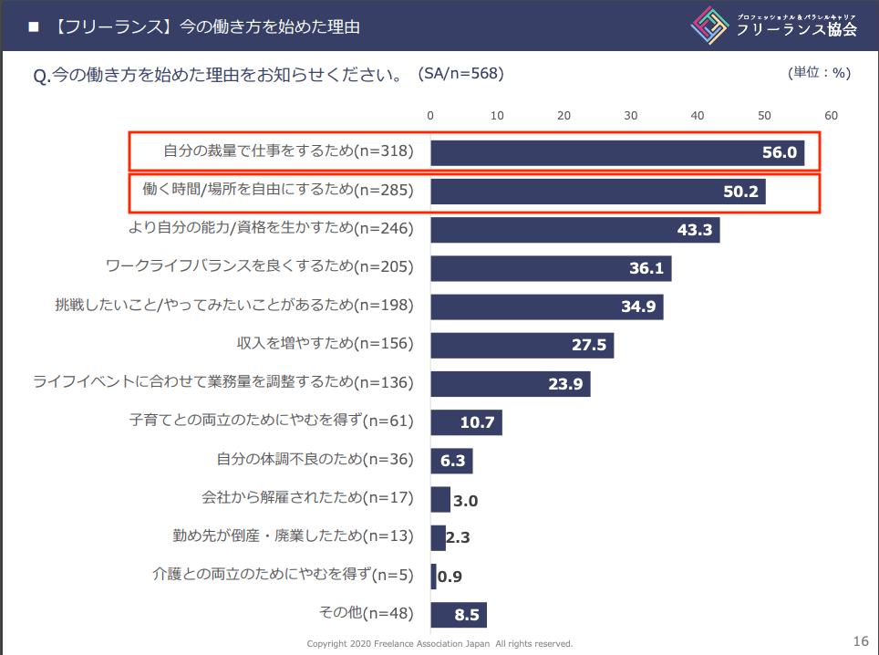 出典:フリーランス白書2020「今の働き方を始めた理由」(フリーランス協会)