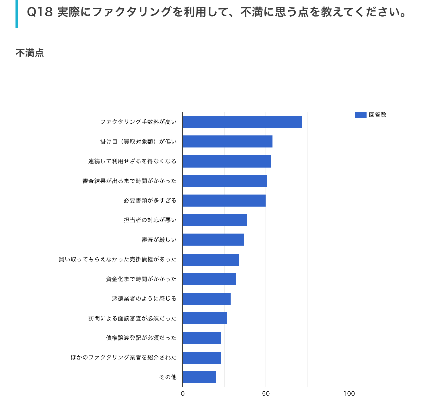 出典:ファクタリング(売掛債権譲渡)利用者への総合調査「実際にファクタリングを利用して、不満に思う点」(ファクタリング比較コンシェル)