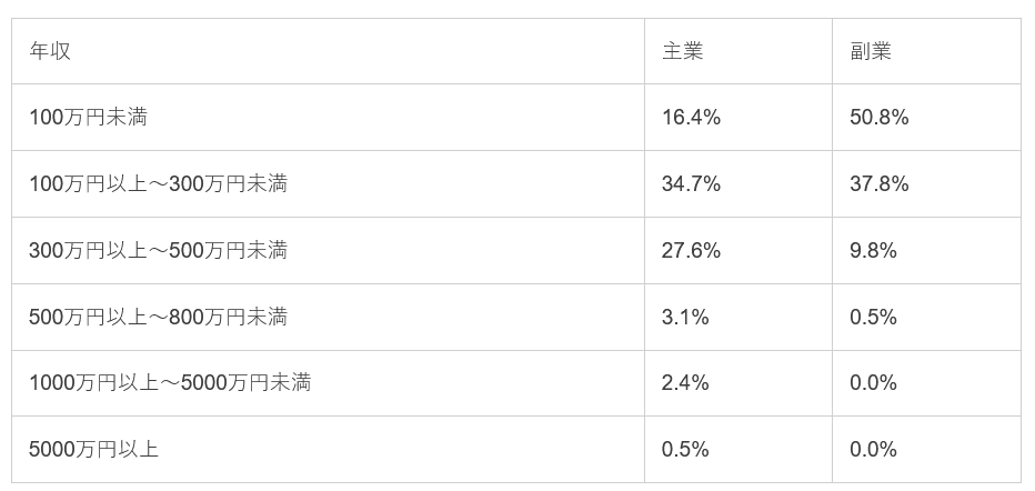 また、年収においても40%のフリーランスが300万円以上稼いでいます。