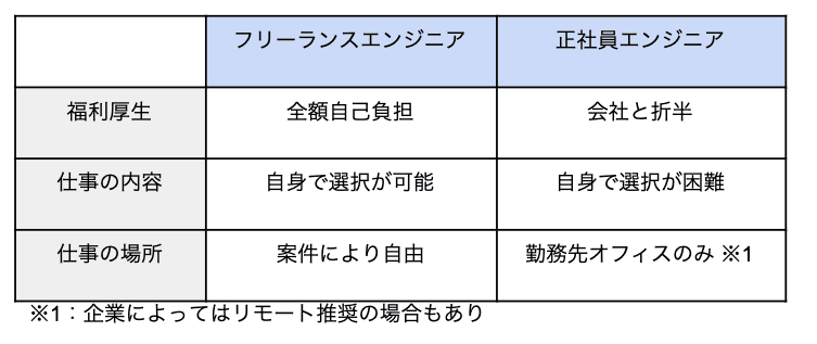 フリーランスエンジニアと正社員エンジニアそれぞれの違いをまとめてみます。