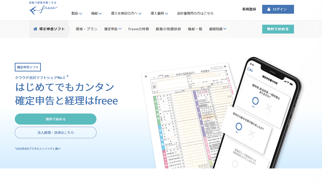 freeeの特徴はスマホからの利便性が高い点です。 スマホアプリで仕訳入力や、確定申告書類の作成までできるのはfreeeだけなので、 「外出先の移動時間で処理したい」という方にはfreeeがおすすめです。freeeには1ヶ月のお試しプランがありますので試しに利用して操作性を確認してみてください