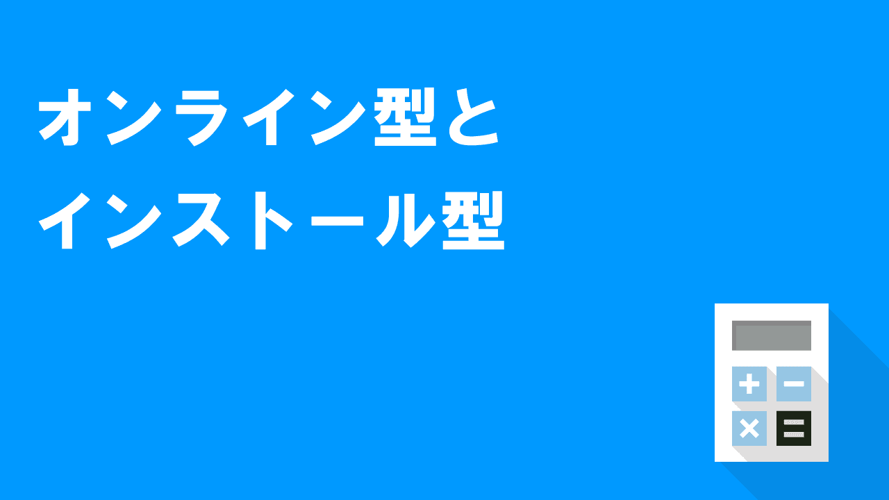 インストール型はPCにソフトをインストールして使うタイプで、「パッケージ型」とも呼ばれます。対してオンライン型はブラウザでアクセスしてネット上で使用するタイプで、近年急激にシェアを拡大しています。