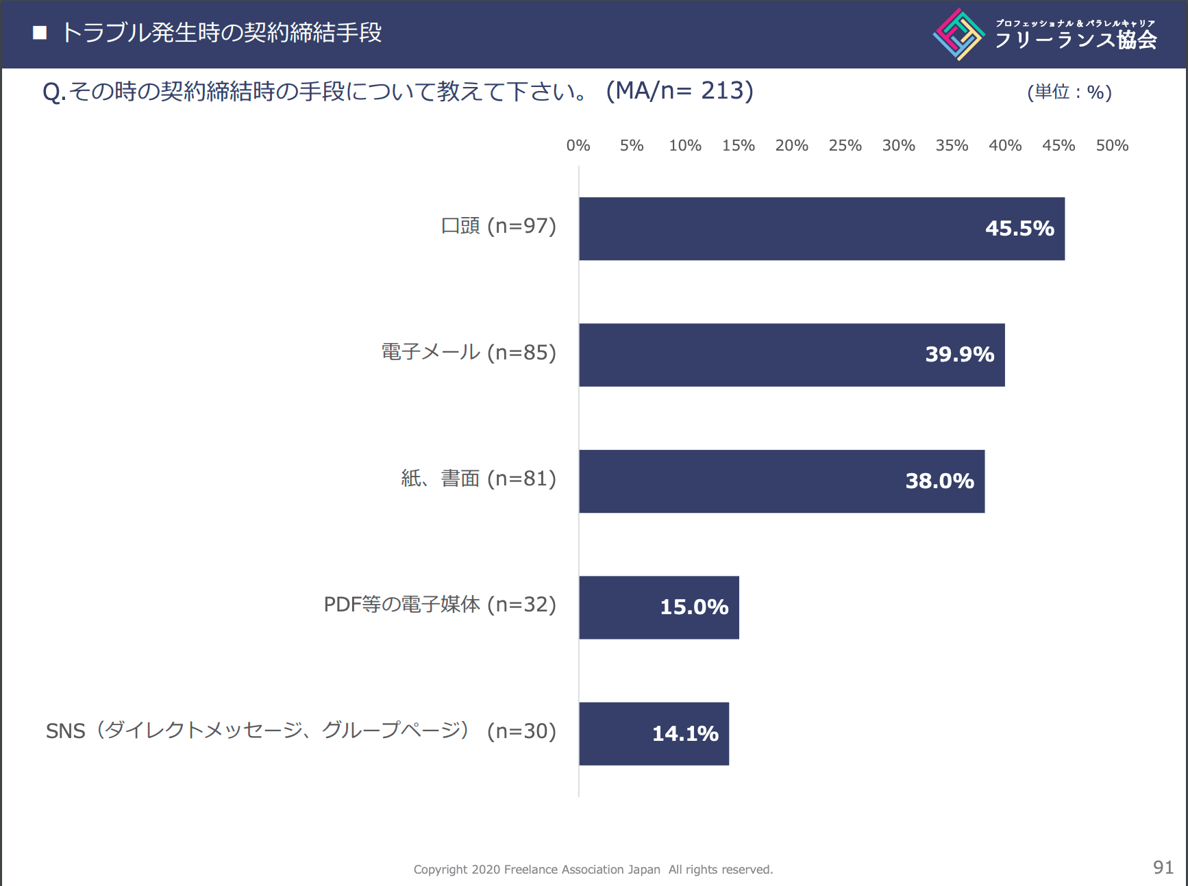 引用:フリーランス白書2020「トラブル発生時の契約締結手段」(フリーランス協会)
