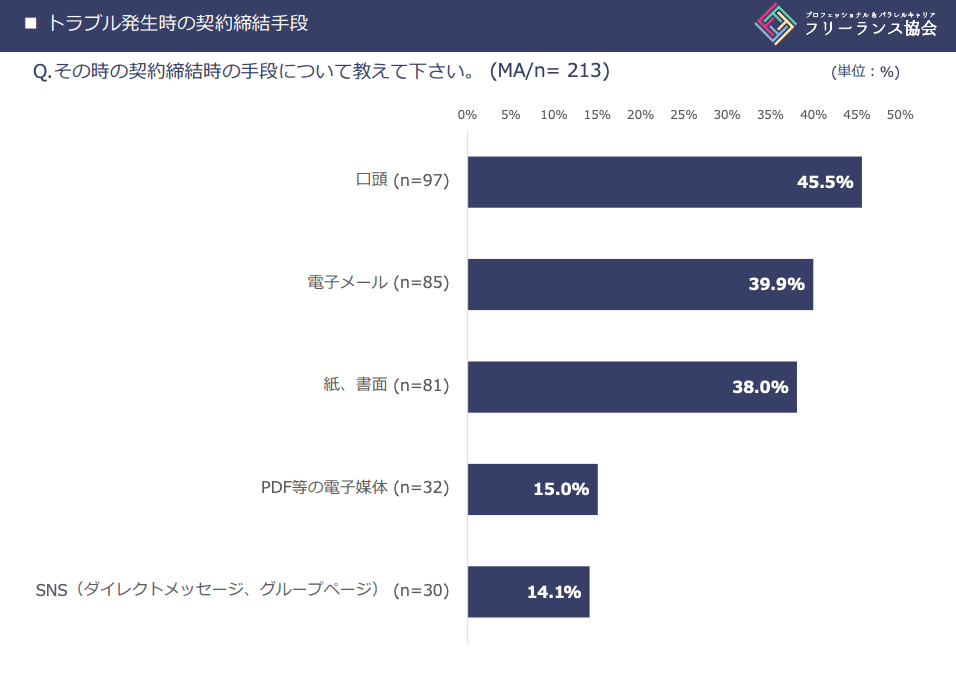 フリーランスのおよそ2人に1人が、書面による契約締結が面倒だと感じているのでしょうか?