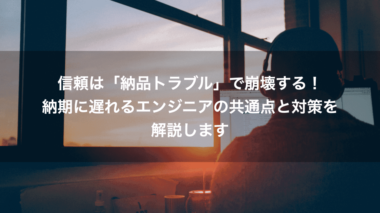 フリーランスエンジニアは、自由な働き方が出来る分、責任も自分で取らなければなりません。中でも、「期日に間に合わない」ことは、依頼主からの信頼を一瞬で失ってしまいます。依頼主との信頼が崩れてしまうことは、フリーランスエンジニアとして避けなければ生き残っていけません。